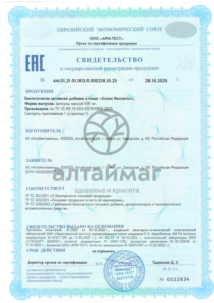 Есть вопросы по товару "Холин Инозитол БАД Алтайвитамины 90 капсул"?