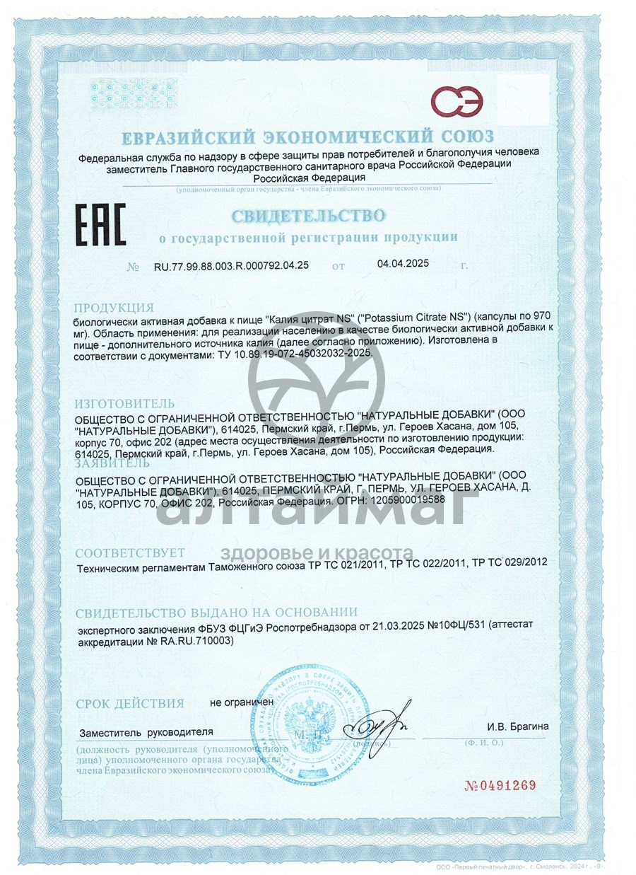 - Купите Калия Цитрат БАД Naturalsupp 60 капсул в Перми по доступной цене 330 ₽ с доставкой на дом или заберите Ваш заказ в Перми из ближайшего пункта выдачи, сделав заказ на AltaiMag.ru.