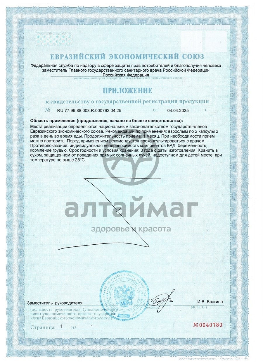 Взрослым по 2 капсулы 2 раза в день во время еды. Продолжительность приема 1 месяц. При необходимости прием БАД можно повторить. Перед применением рекомендуется проконсультироваться с врачом.Противопоказания