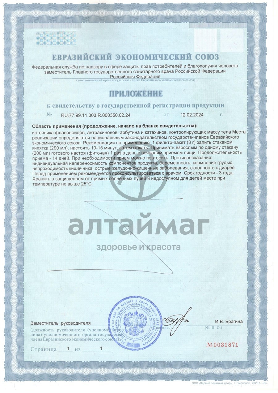 Оздоровительный, очистительный, жиропонижающий чай. Очищает желудок, кишечник, обладает ферментативным действием, устраняет несварение пищи. Выводит шлаки из организма, нормализует вес. Очищает печень, желчный пузырь. Понижает содержание жиров на стенках сосудов, в крови. Оздоровляет кожу.