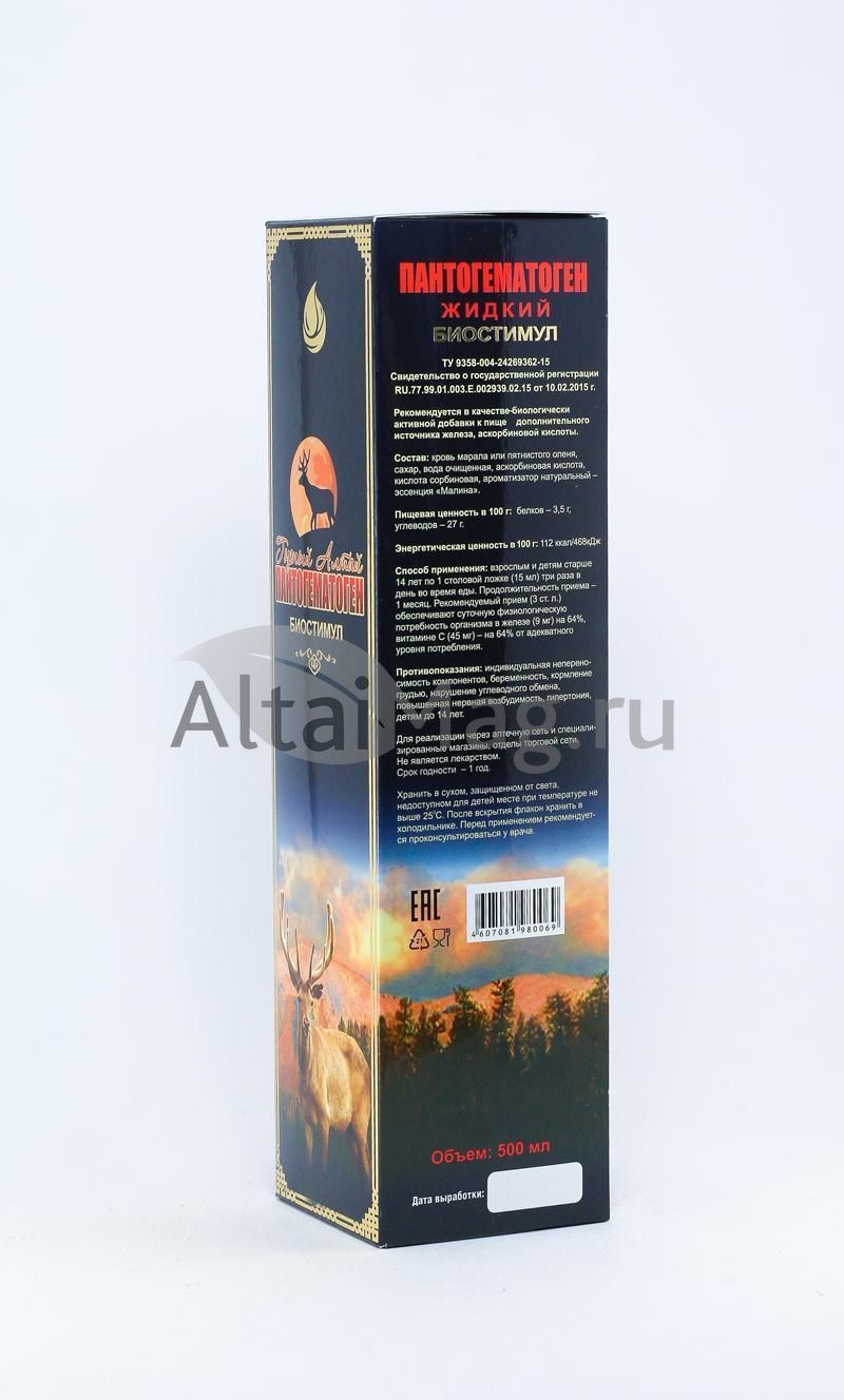 - Чтобы купить Пантогематоген Горноалтайский жидкий Биостимул, 500 мл совершите всего несколько шагов: укажите количество продукта и нажмите на кнопку «Купить».