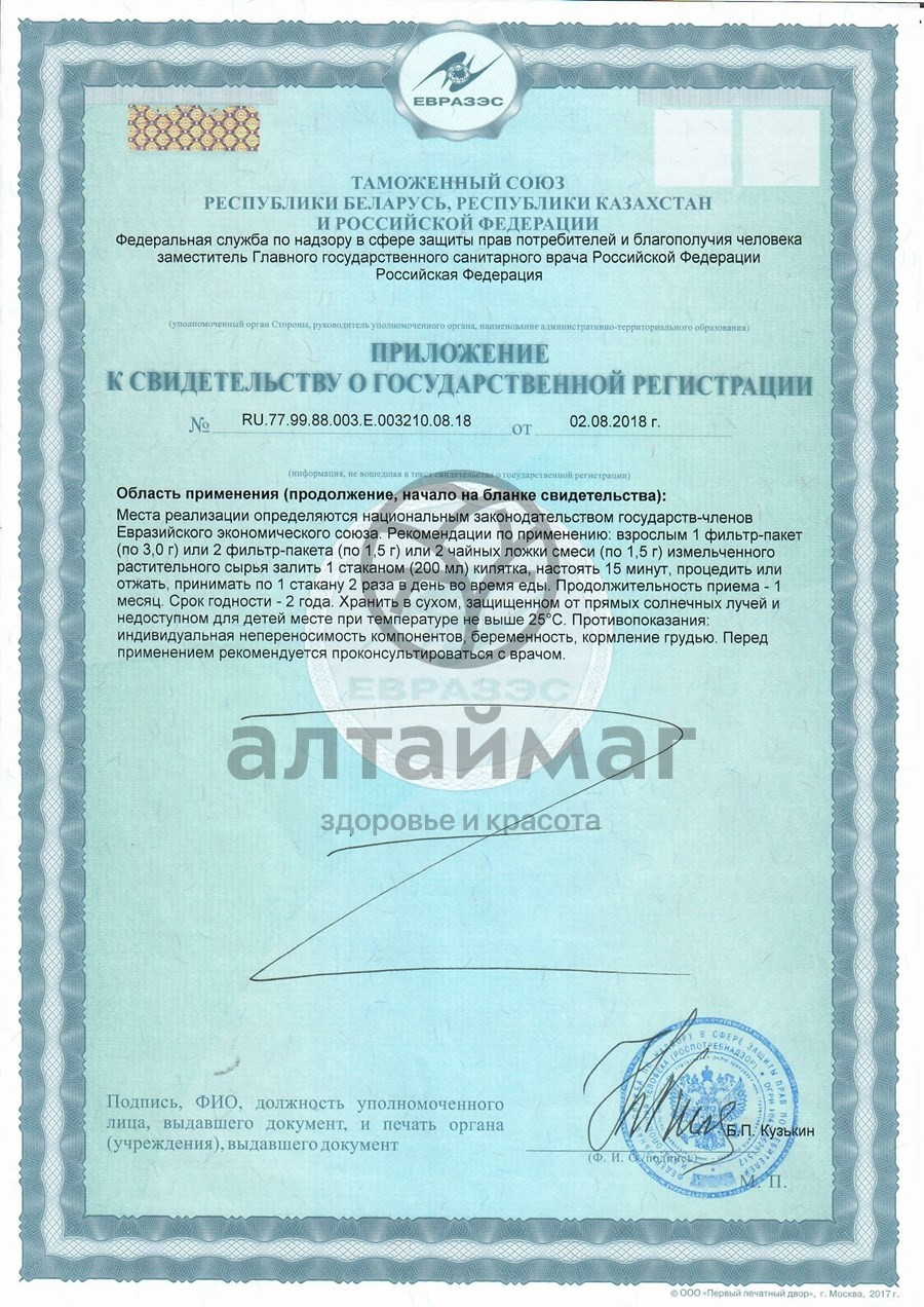 20 фильтр - пакетов по 1,5 граммаНазначение